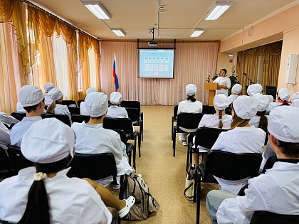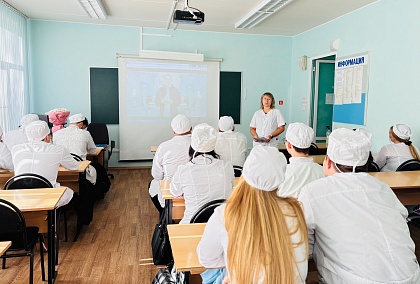 После линейки студенты приняли участие в занятии на тему: «Мирный атом. День работника атомной промышленности». Кураторы учебных групп познакомили обучающихся с историей отечественной атомной энергетики, рассказали о значении и роли атомных технологий в развитии страны.