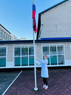 Право поднятия Государственного флага Российской Федерации — символа единства, силы и достоинства нашей страны — было предоставлено Алине Новиковой, студентке 2 курса специальности «Акушерское дело».