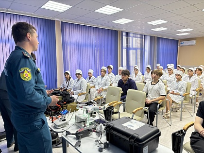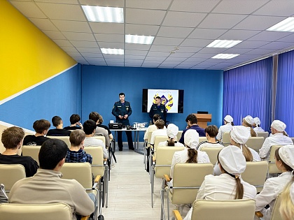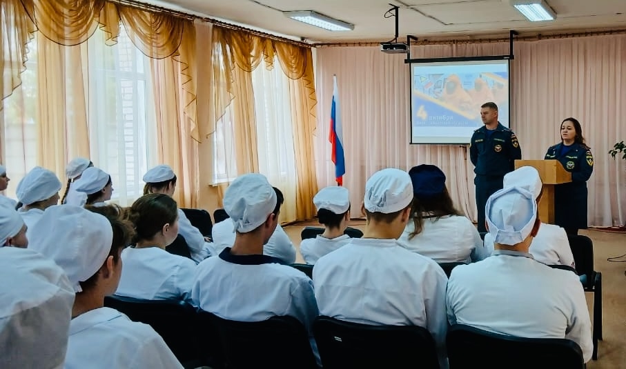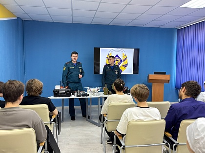 4 октября студенты встретились с инспекторами Государственного пожарного надзора Елизаветой Соцковой и Павлом Ефремовым. Сотрудники напомнили о правилах поведения при природных и техногенных ЧС, угрозах применения БПЛА и действиях при возникновении пожара. Участники обсудили алгоритмы реагирования в условиях повышенного риска и важность личной подготовки.