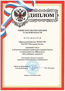 Ефремовский филиал РязГМУ занял 1 место в номинации «Лучшее освещение спортивно-оздоровительных мероприятий».