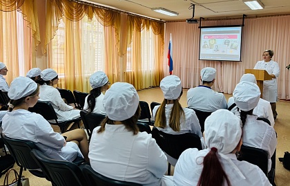 Сегодня в Ефремовском филиале РязГМУ учебная неделя началась с традиционной торжественной линейки и тематического занятия в рамках федерального просветительского проекта «Разговоры о важном».