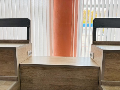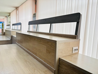 Теперь скамейки обрели новое функциональное продолжение. Благодаря совместной работе мастера производственного обучения Б.И. Федяинова, преподавателя В.Е. Полосухина, начальника хозяйственного отдела В.Ю. Новикова в конструкцию были встроены розетки. Это значит, что студенты могут не только отдохнуть, но и зарядить свои устройства, и быть на связи, даже во время перерыва на свежем воздухе.
