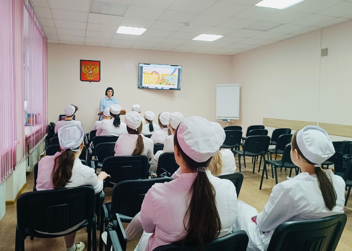 Сегодня учебная неделя в Ефремовском филиале РязГМУ традиционно началась с торжественной линейки и тематического занятия в рамках федерального просветительского проекта «Разговоры о важном».