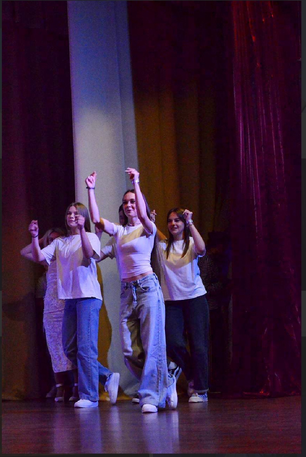 В этот вечер сцена ожила от разнообразия талантов: музыкальные номера, танцевальные постановки, акробатические этюды, художественное слово и флешмобы — каждый номер был наполнен энергией, юмором и искренностью. Особым моментом стало выступление кураторов первокурсников, которые тоже не удержались и дебютировали в вокальном исполнении.