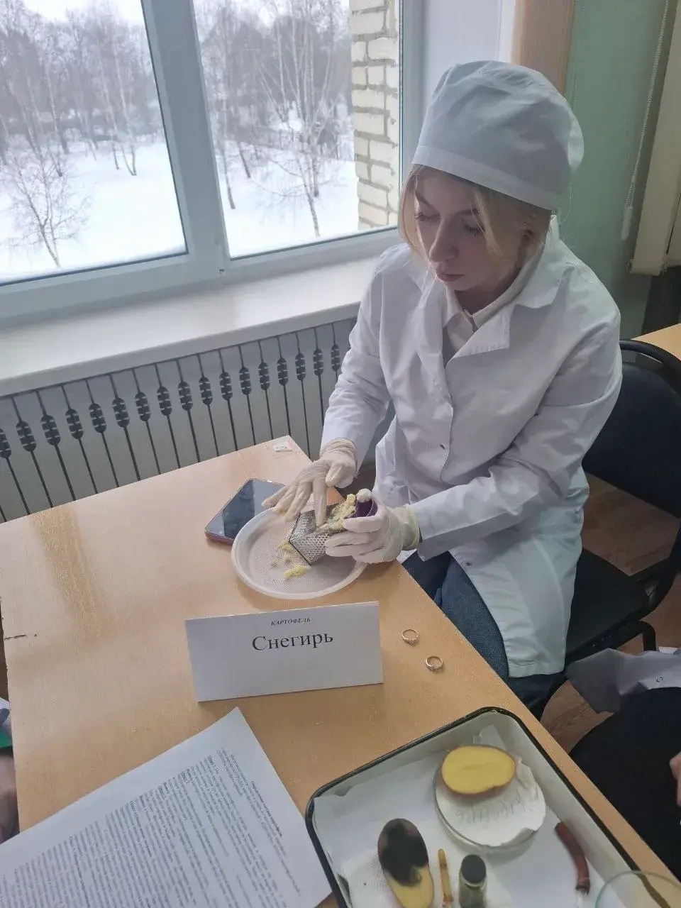 16 февраля участники кружка провели учебно-исследовательскую работу по определению содержания крахмала в различных сортах картофеля: «Отрада», «Королева Анна», «Снегирь».