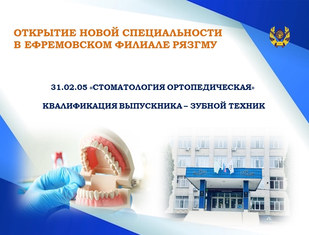 Рязанский государственный медицинский университет имени академика И.П. Павлова получил право на реализацию новой образовательной программы среднего профессионального образования. Уже с 2026 года в Ефремовском филиале РязГМУ будет открыт прием на специальность 31.02.05 «Стоматология ортопедическая».