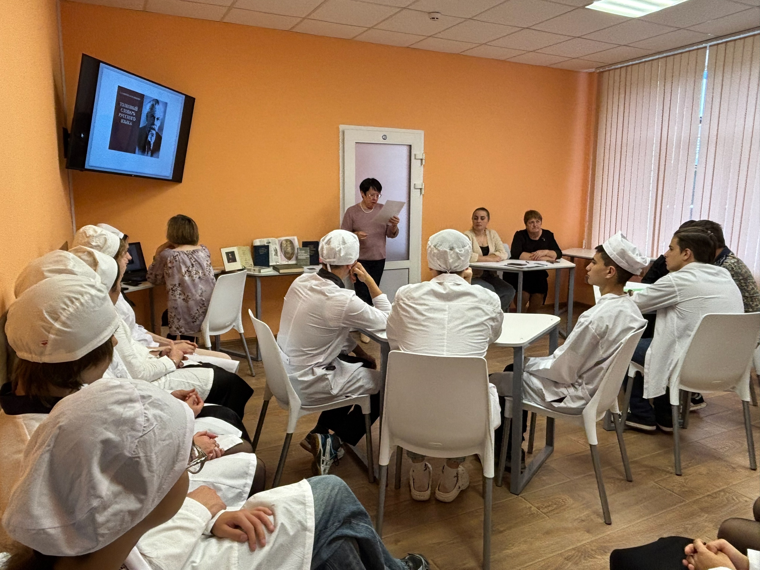 Мероприятие организовали и провели заведующая библиотекой Н.Ю. Муратова и библиотекарь Н.Е. Хлестанова. В роли участников выступили студенты групп А-253 и Э-255, первокурсники, которые познакомились с удивительной историей словарей — от древнейших (первый словарь был составлен еще в III веке до н. э. в Китае) до современных изданий. Это помогло им понять, что язык — живой организм, постоянно меняющийся и развивающийся.