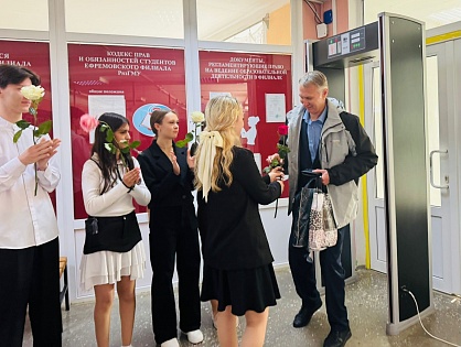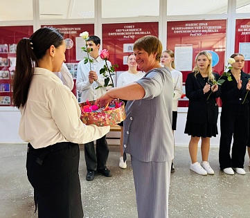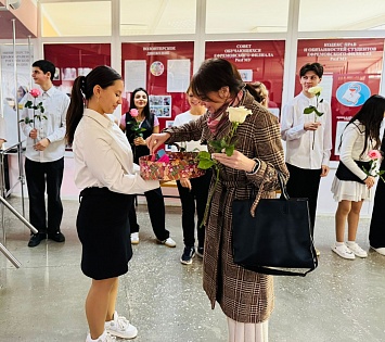 С самого утра студентов объединило одно желание — сказать «спасибо» своим преподавателям. У входа в здание филиала они встречали педагогов с цветами и поздравлениями, создавая атмосферу внимания и уважения. Эти трогательные моменты стали символом признательности за труд, терпение и преданность делу.