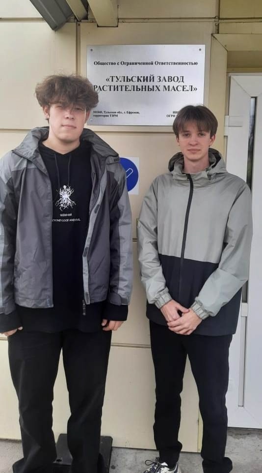 На предприятии ООО «Тульский завод растительных масел» Захар Донченко и Александр Воронин изучают устройство цехов и производственных линий, особенности вентиляционных и осветительных систем, работу электромеханических узлов и автоматики. Под руководством наставников они наблюдают за организацией электроснабжения на пищевом производстве и получают представление о стандартах промышленной безопасности.