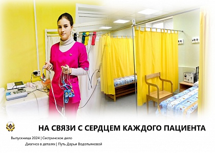 В профессии нет мелочей, особенно когда речь идет о здоровье сердца. Дарья Водопьянова — выпускница 2024 года Ефремовского филиала РязГМУ по специальности «Сестринское дело».