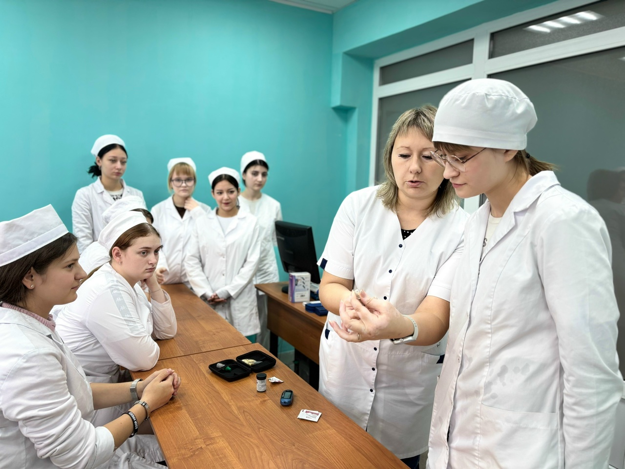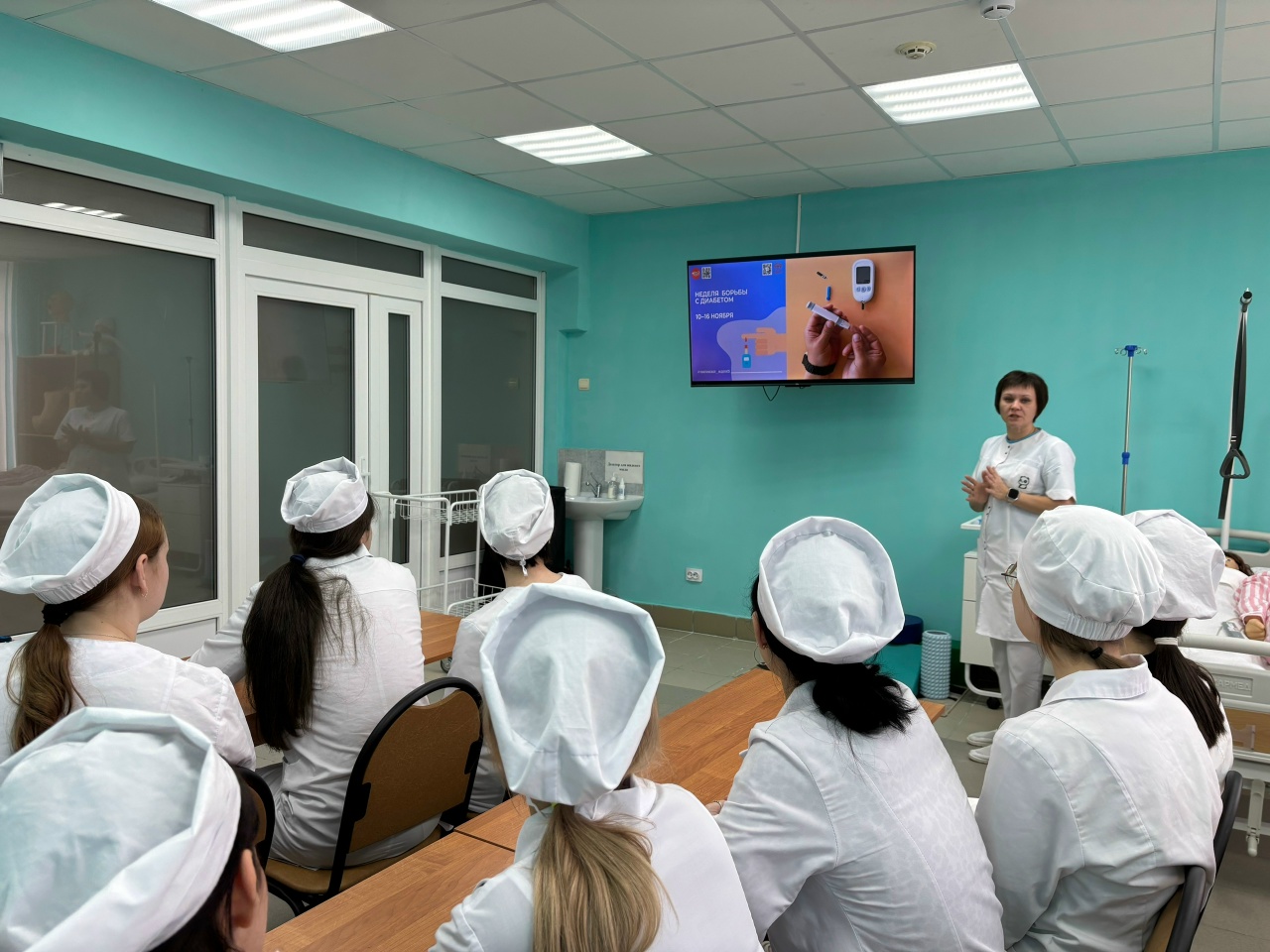 В рамках Недели борьбы с диабетом преподаватели ЦМК УГПС 34.00.00 «Сестринское дело» провели для студентов специальности «Акушерское дело» серию интерактивных занятий под девизом Всемирного дня борьбы с диабетом 2025 года: «Знайте больше и делайте больше для борьбы с диабетом».