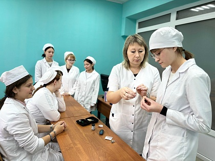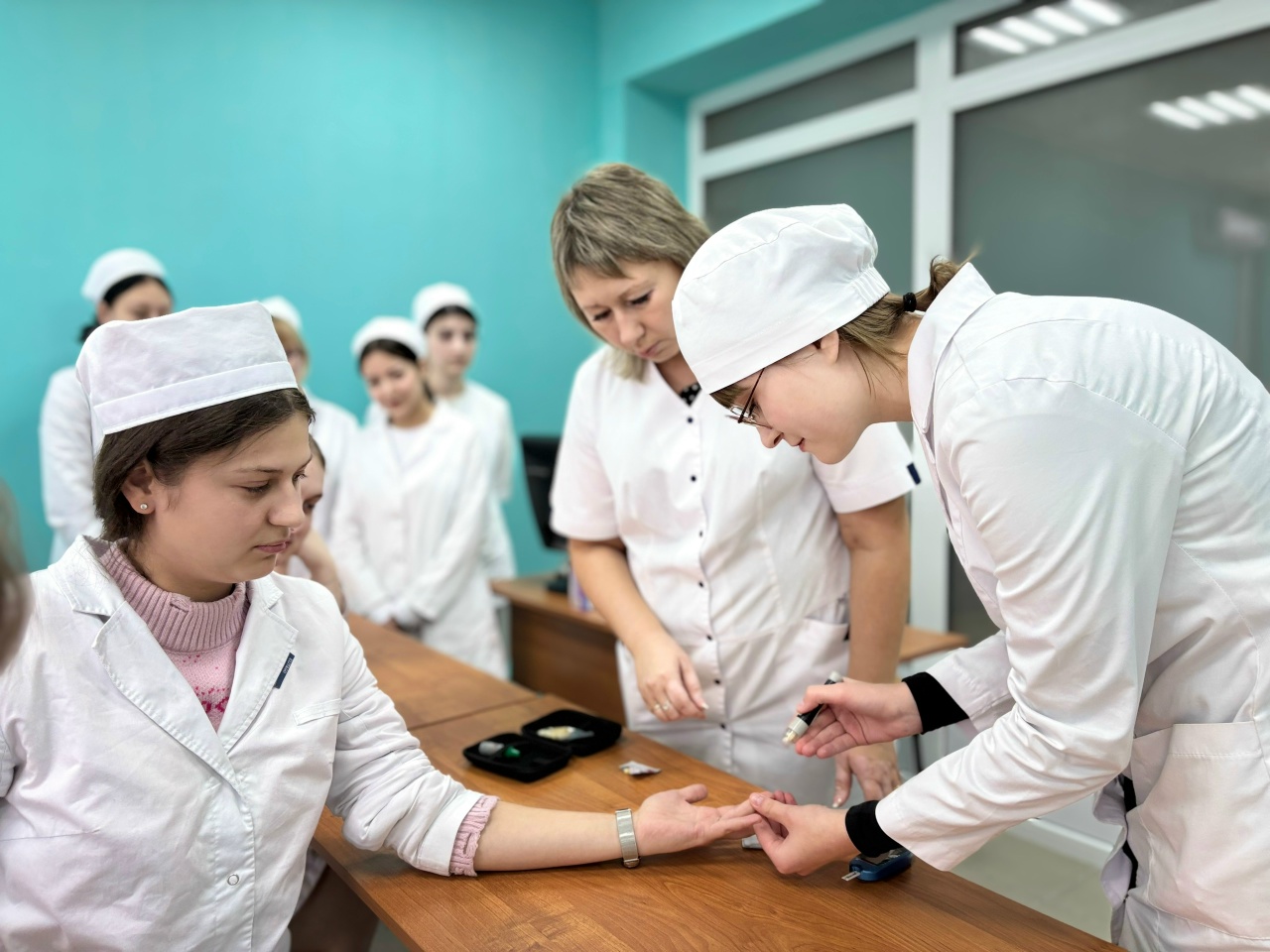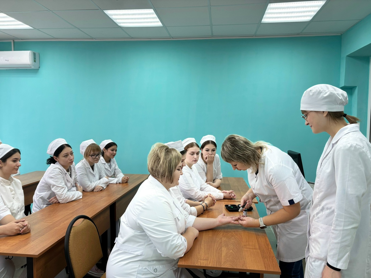 На мастер-классе по использованию глюкометра студенты освоили практические навыки контроля уровня глюкозы крови и познакомились с современными медицинскими устройствами, применяемыми в клинической практике.