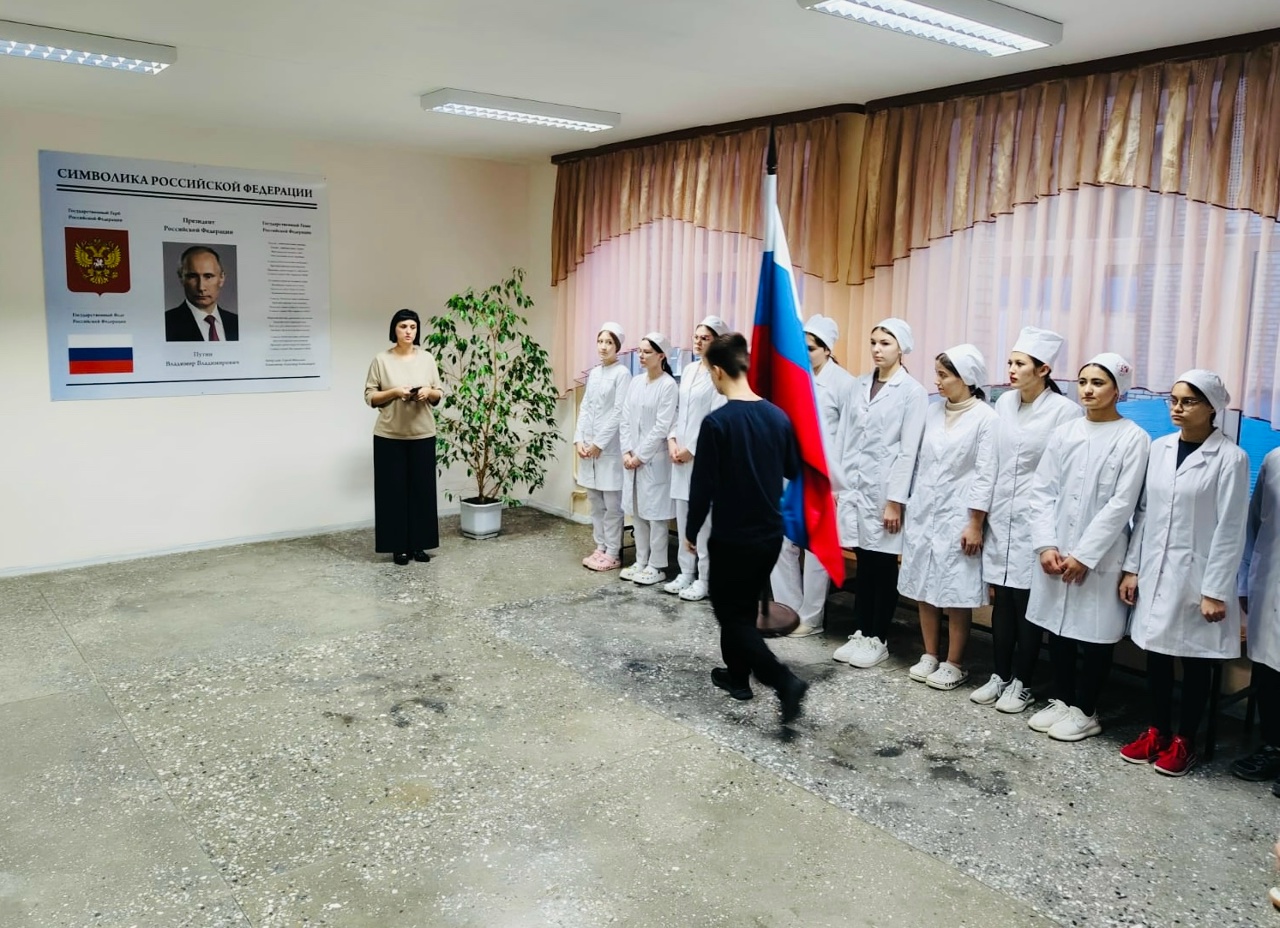 Сегодня учебная неделя в филиале РязГМУ началась с торжественной линейки и тематического занятия в рамках федерального просветительского проекта «Разговоры о важном».