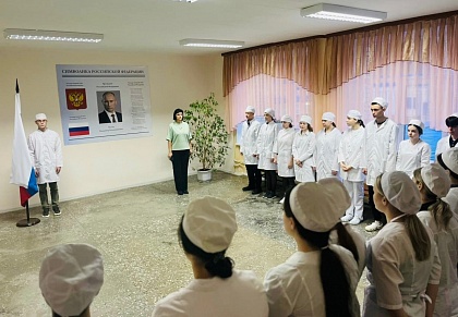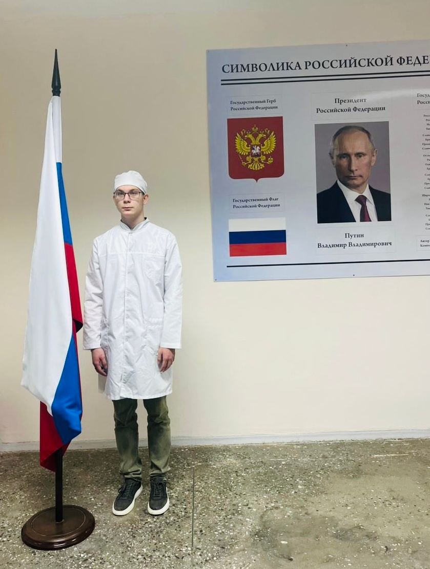 Мероприятие традиционно открылось выносом Государственного флага Российской Федерации — символа национального единства, чести и достоинства. Почетное право вынести флаг было предоставлено студенту 2 курса специальности «Сестринское дело» Михаилу Худякову.