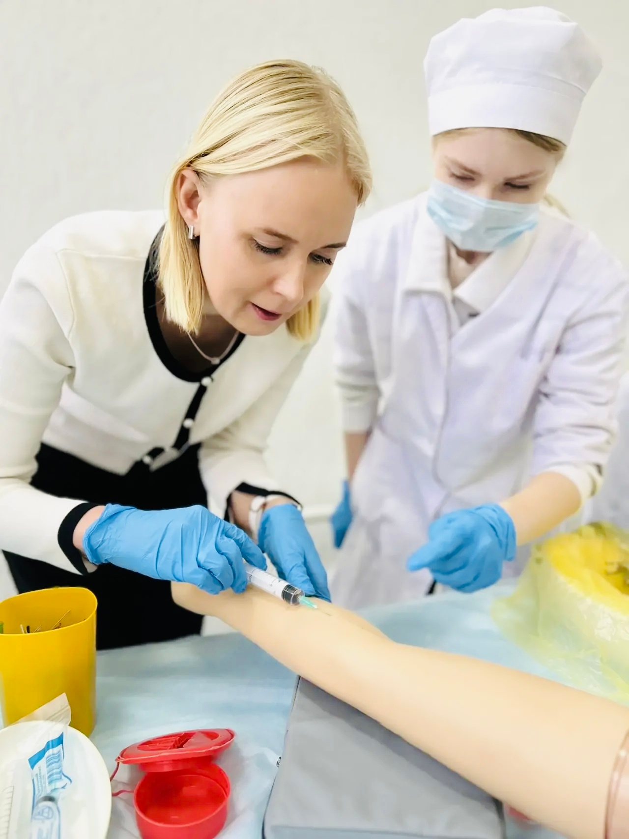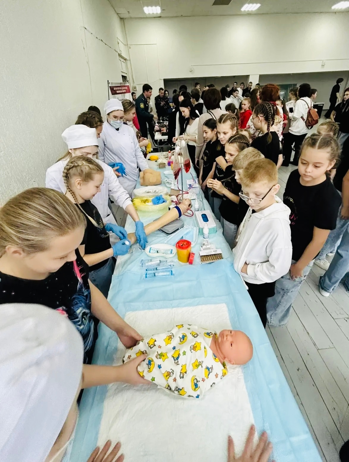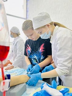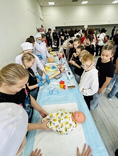 Будущие медицинские специалисты провели серию практических мини-сессий, на которых каждый желающий смог попробовать себя в выполнении базовых медицинских процедур под контролем студентов-добровольцев. Гости хаба получили возможность: