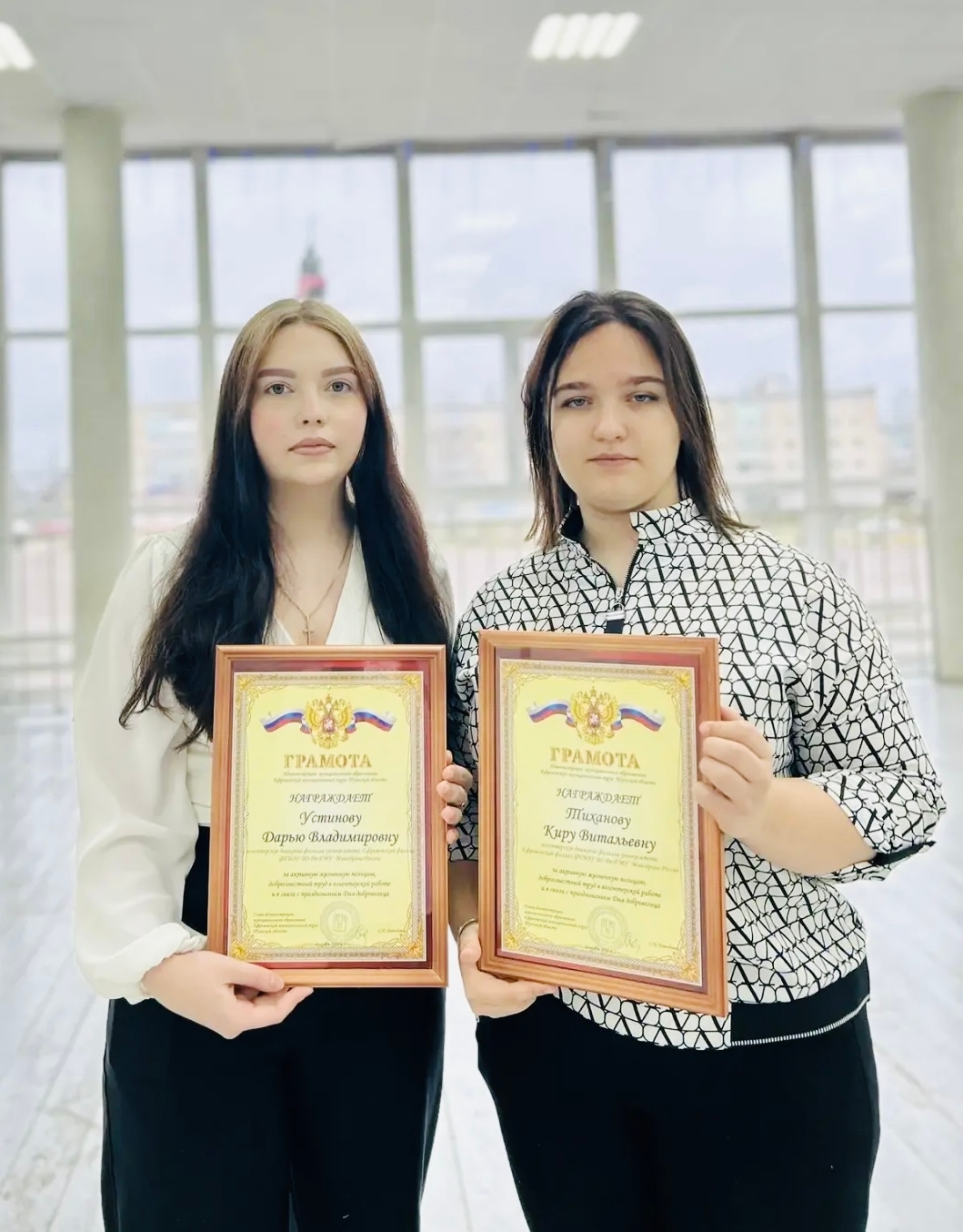 Завершением события стала церемония чествования активных добровольцев Ефремова. Среди отмеченных — студентки 2 курса специальности «Сестринское дело»: Дарья Устинова и Кира Тихонова. Они награждены Грамотой главы Ефремовского муниципального округа Тульской области за активную гражданскую позицию и добросовестный вклад в развитие волонтерского движения.