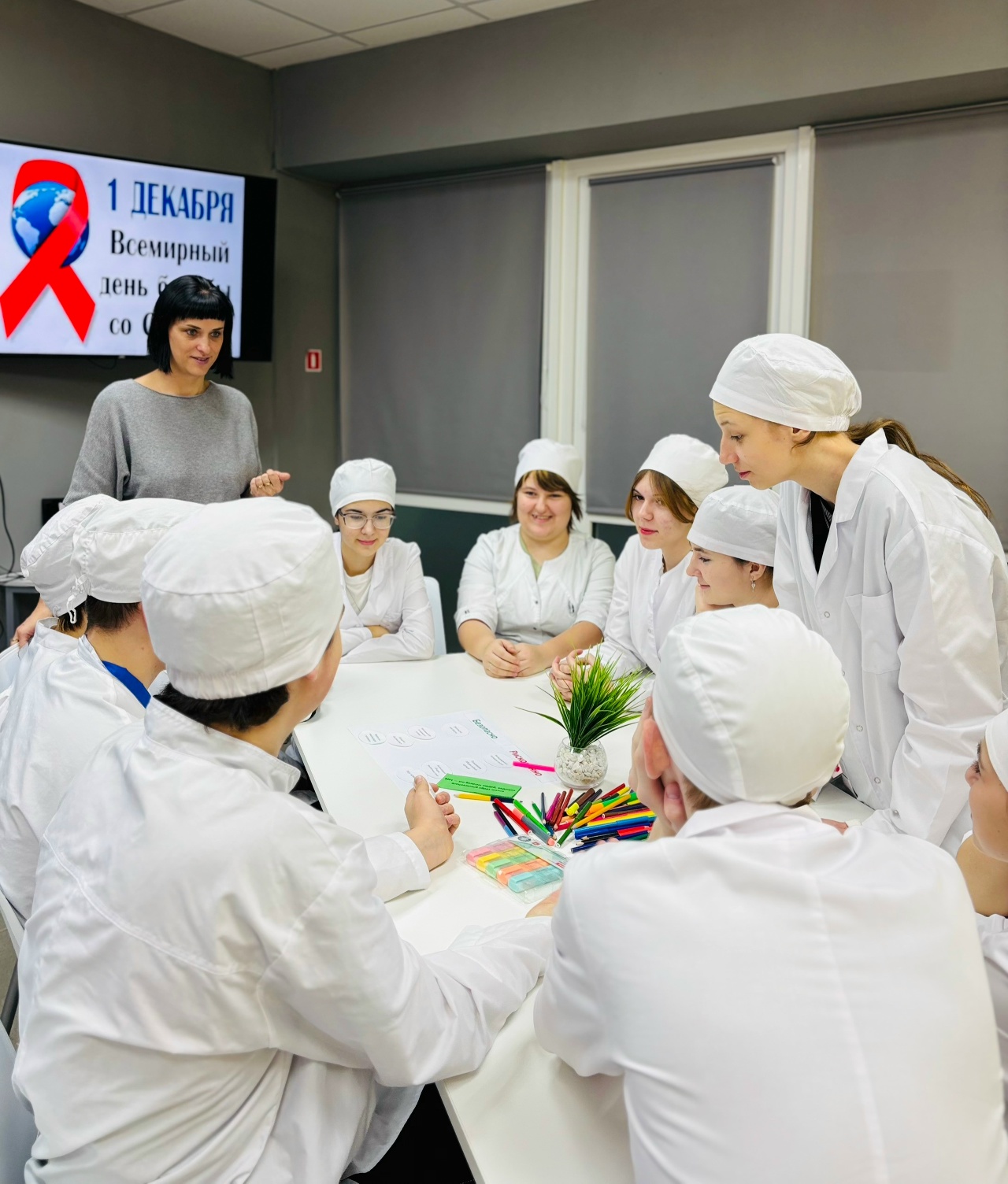 4 декабря первокурсники специальности «Сестринское дело» приняли участие в интерактивном занятии по профилактике ВИЧ-инфекции. Мероприятие подготовила начальник сектора воспитательной работы М.В. Полковникова.
