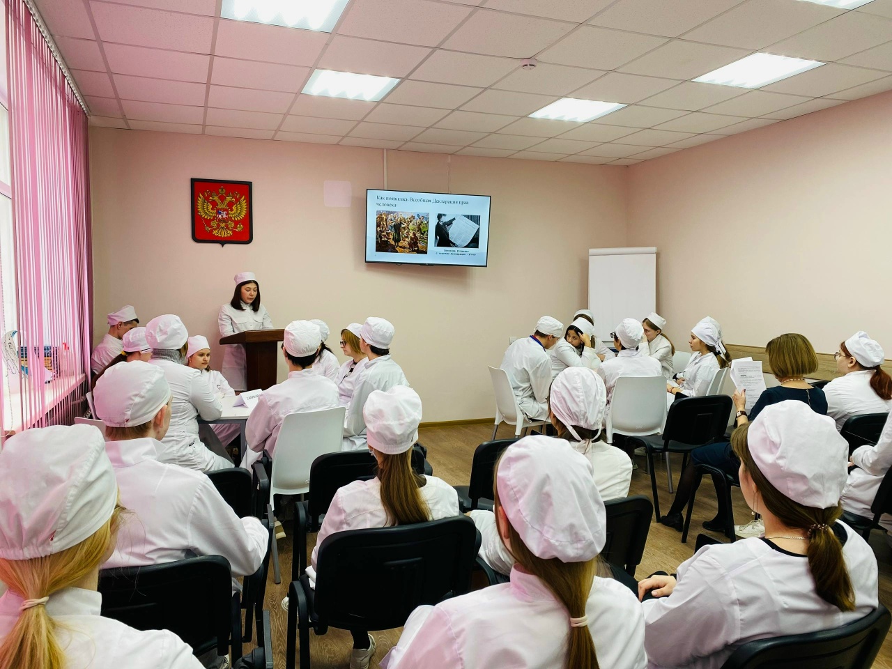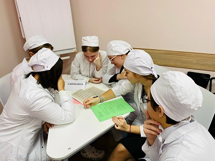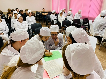 Урок прошел в формате интерактивной беседы с элементами игры под руководством преподавателя Л.А. Поповой. В занятии участвовали студенты 1 и 2 курсов специальностей «Сестринское дело» и «Эксплуатация и обслуживание электрического и электромеханического оборудования (по отраслям)».