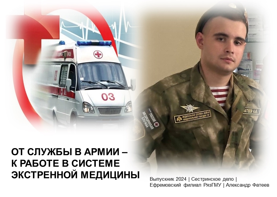 История Александра — пример того, как выпускники Ефремовского филиала РязГМУ уверенно входят в профессию, служат людям и находят свое место в системе здравоохранения. Мы гордимся нашими выпускниками и продолжаем рассказывать о тех, кто выбирает медицину не просто профессией, а делом всей жизни.