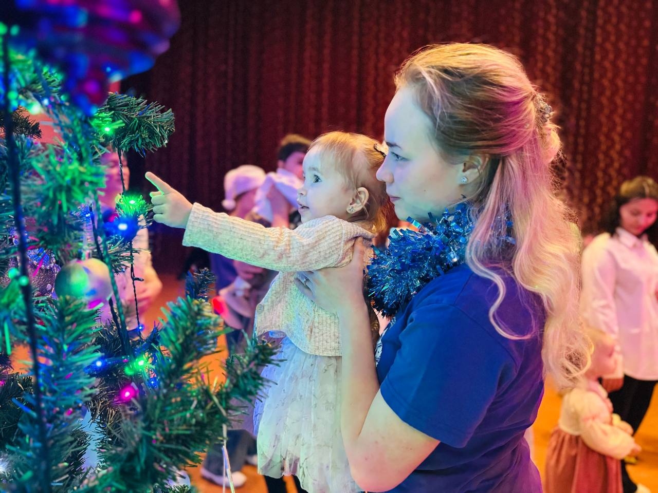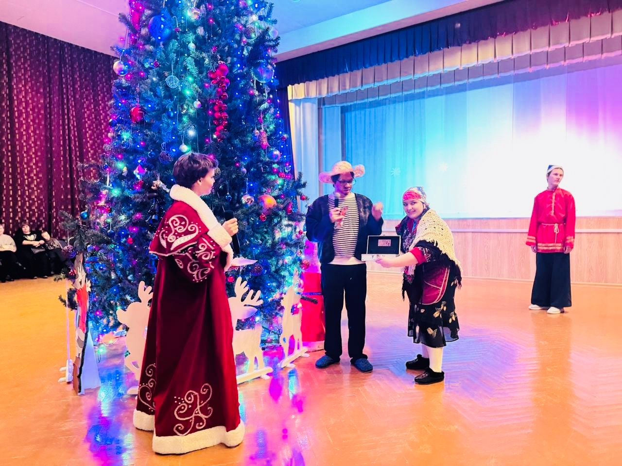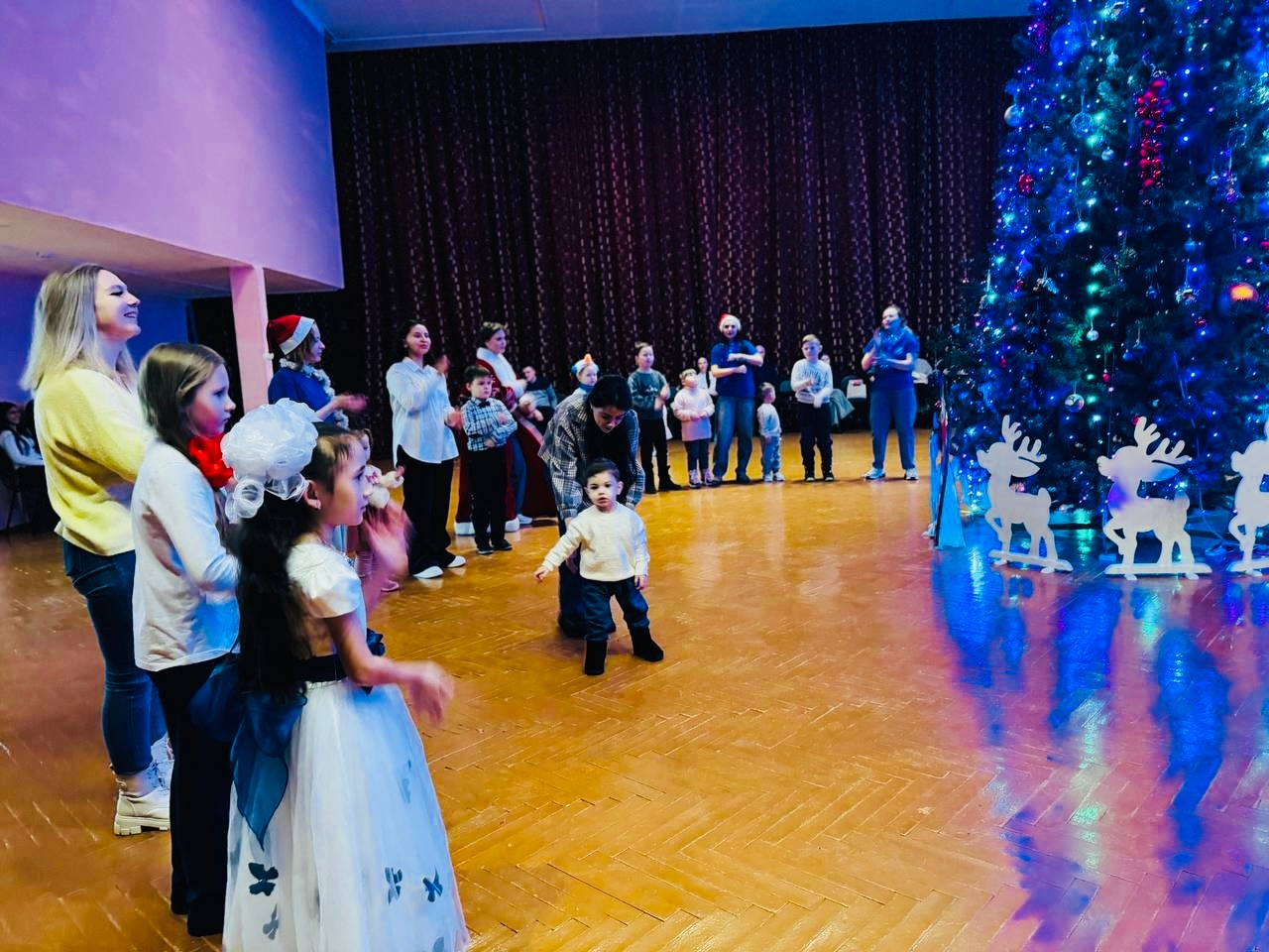 Праздник прошел в атмосфере радости, доверия и настоящего чуда. Яркие костюмы, динамичный сценарий, песни, танцы и веселые игры вовлекали детей с первых минут. Ребята водили хороводы, отгадывали загадки, активно участвовали в номерах и с искренним интересом проживали каждое мгновение сказки. Особенно трогательным стало завершение праздника: все желающие смогли рассказать стихи Деду Морозу, сделать памятные фотографии с героями и унести с собой не только подарки, но и ощущение приближающегося Нового года.