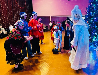 В этот день филиал университета на время превратился в сказочное Тридевятое царство, где каждый ребенок стал не просто зрителем, а участником увлекательной новогодней истории. Театрализованная программа объединила знакомых и любимых персонажей: Золотую рыбку, Двоих из ларца, Василис Премудрых и, конечно, главных зимних волшебников — Деда Мороза и Снегурочку.
