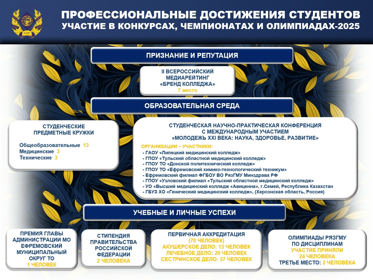 2025 год стал для Ефремовского филиала РязГМУ годом роста, движения и уверенных результатов. За каждой цифрой — работа студентов, преподавателей и сотрудников, их энергия, ответственность и неравнодушие.