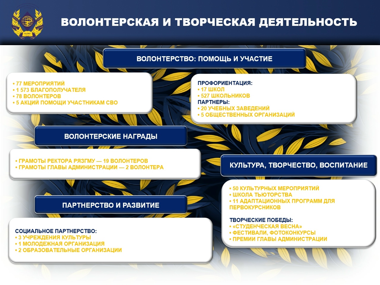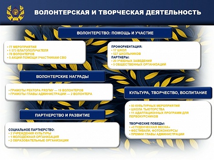 Мы собрали ключевые достижения года в удобной инфографике — чтобы было видно главное: как развивается образовательная среда, как растет активность студентов, расширяются партнерства, укрепляется волонтерство, спорт и воспитательная работа.