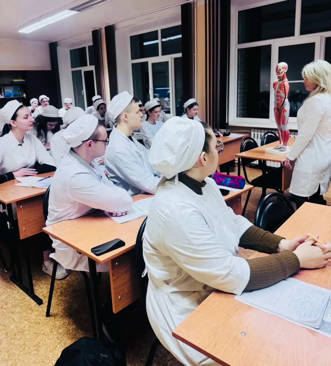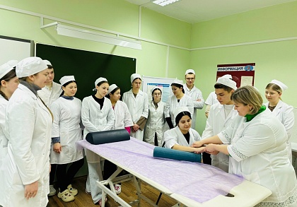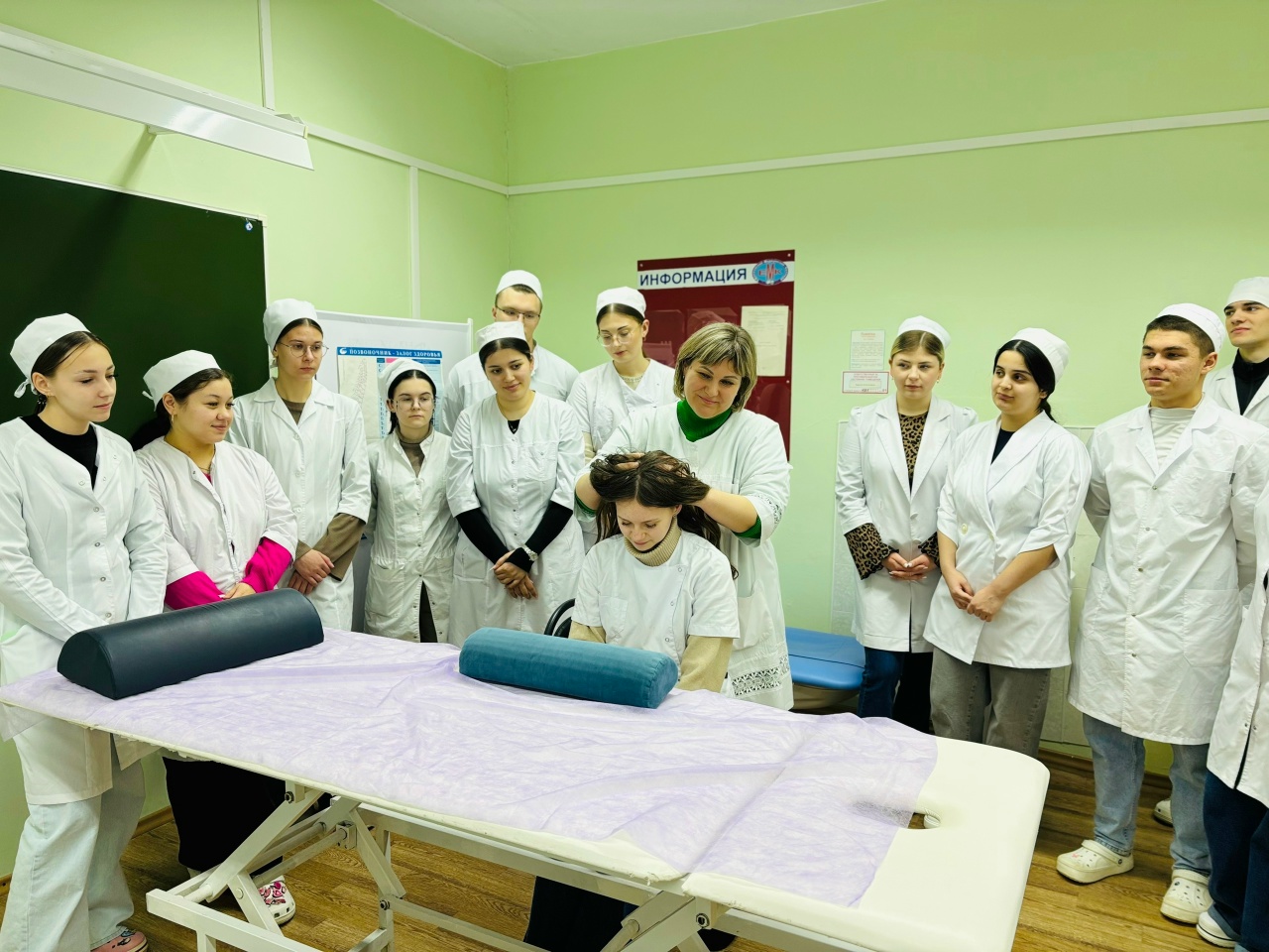 34.02.01 «Сестринское дело» и 31.02.02 «Акушерское дело» — по 23 человека в каждой группе. Такой интерес к программе неслучаен: в июне 2026 года филиал ожидает масштабный выпуск — 127 выпускников медицинских специальностей, и именно в этом учебном году количество желающих освоить медицинский массаж значительно превысило показатели прошлых лет.