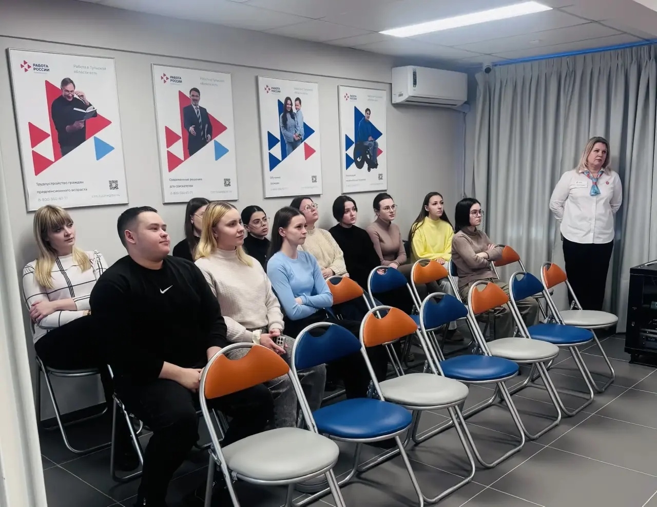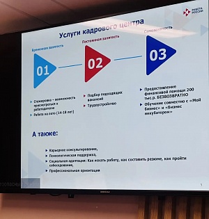 В ходе тренинга студенты познакомились с деятельностью кадрового центра, его задачами и направлениями работы, включая взаимодействие с работодателями, соискателями и образовательными организациями, а также посмотрели тематический фильм о работе службы. Отдельное внимание было уделено мерам государственной поддержки граждан, в том числе субсидиям для развития малого бизнеса и поддержке малоимущих жителей Тульской области.