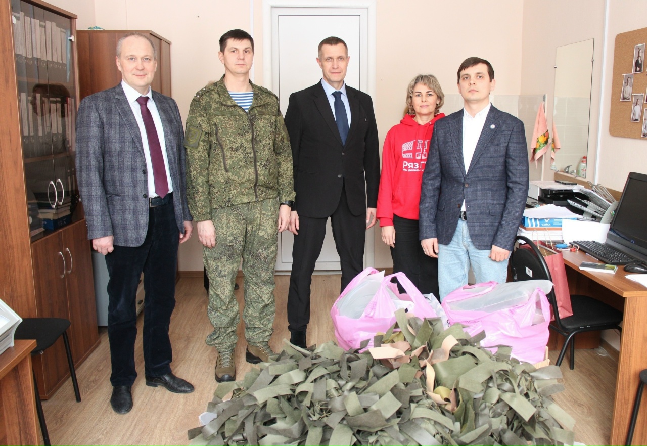 Накануне Дня защитника Отечества в университете состоялась встреча с представителем 137 гвардейского полка ВДВ, в ходе которой гуманитарная помощь была передана бойцам. В мероприятии приняли участие ректор Роман Евгеньевич Калинин, председатель Профсоюза работников здравоохранения РФ в Рязани Алексей Александрович Дементьев, председатель Профкома РязГМУ Давид Андреевич Соловьёв, проректор по воспитательной работе и международной деятельности Карина Юрьевна Низова, а также волонтеры-медики.