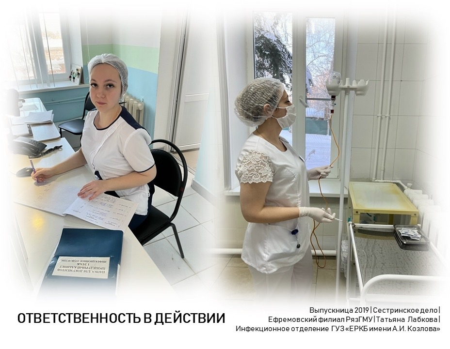 Сегодня история Татьяны Лабковой (Бажиновой), выпускницы 2019 года специальности «Сестринское дело» Ефремовского филиала РязГМУ.