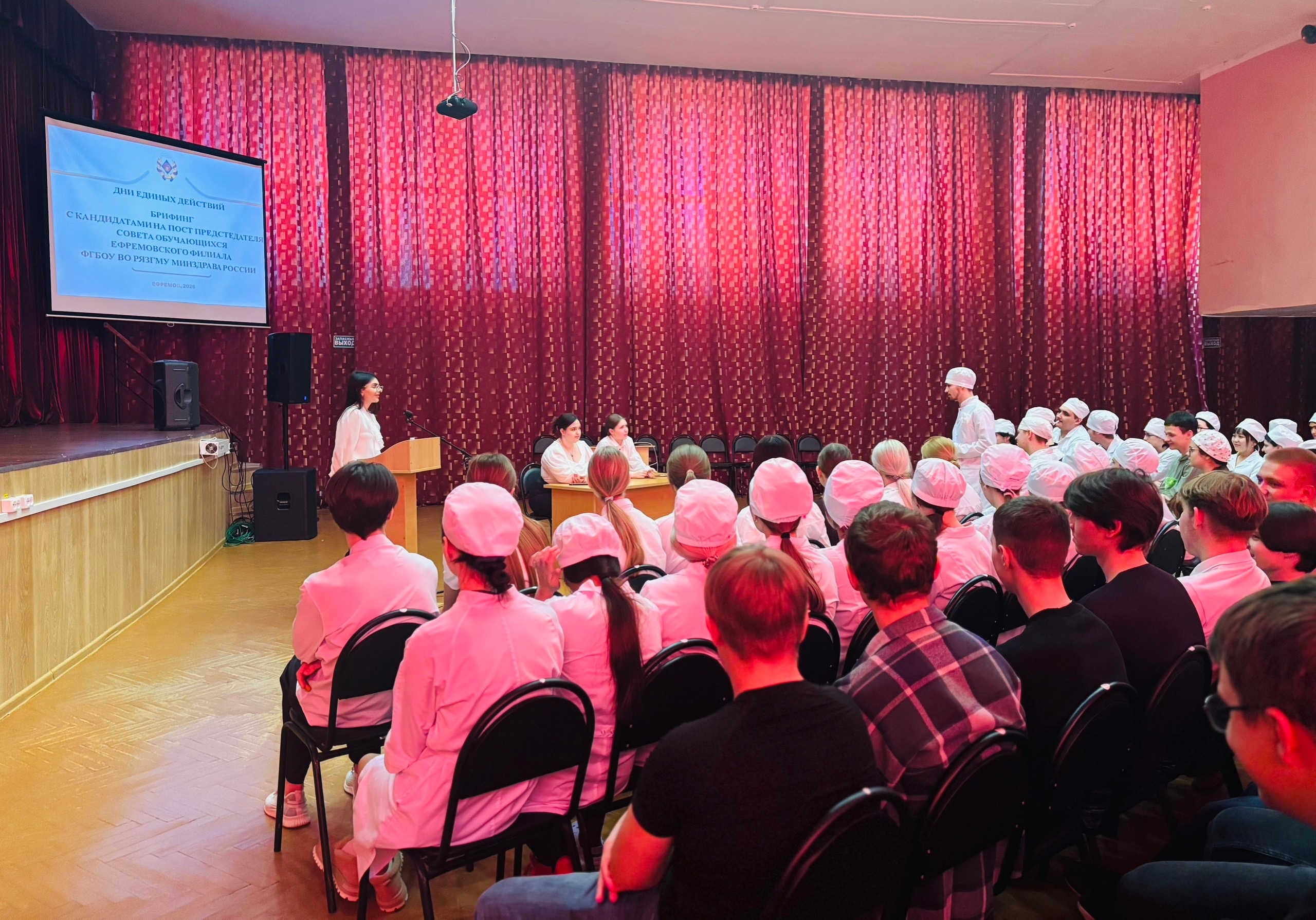 24 марта в Ефремовском филиале РязГМУ прошла открытая студенческая сессия с кандидатами на должность Председателя совета обучающихся — Алёной Алешиной и Кирой Тихоновой.