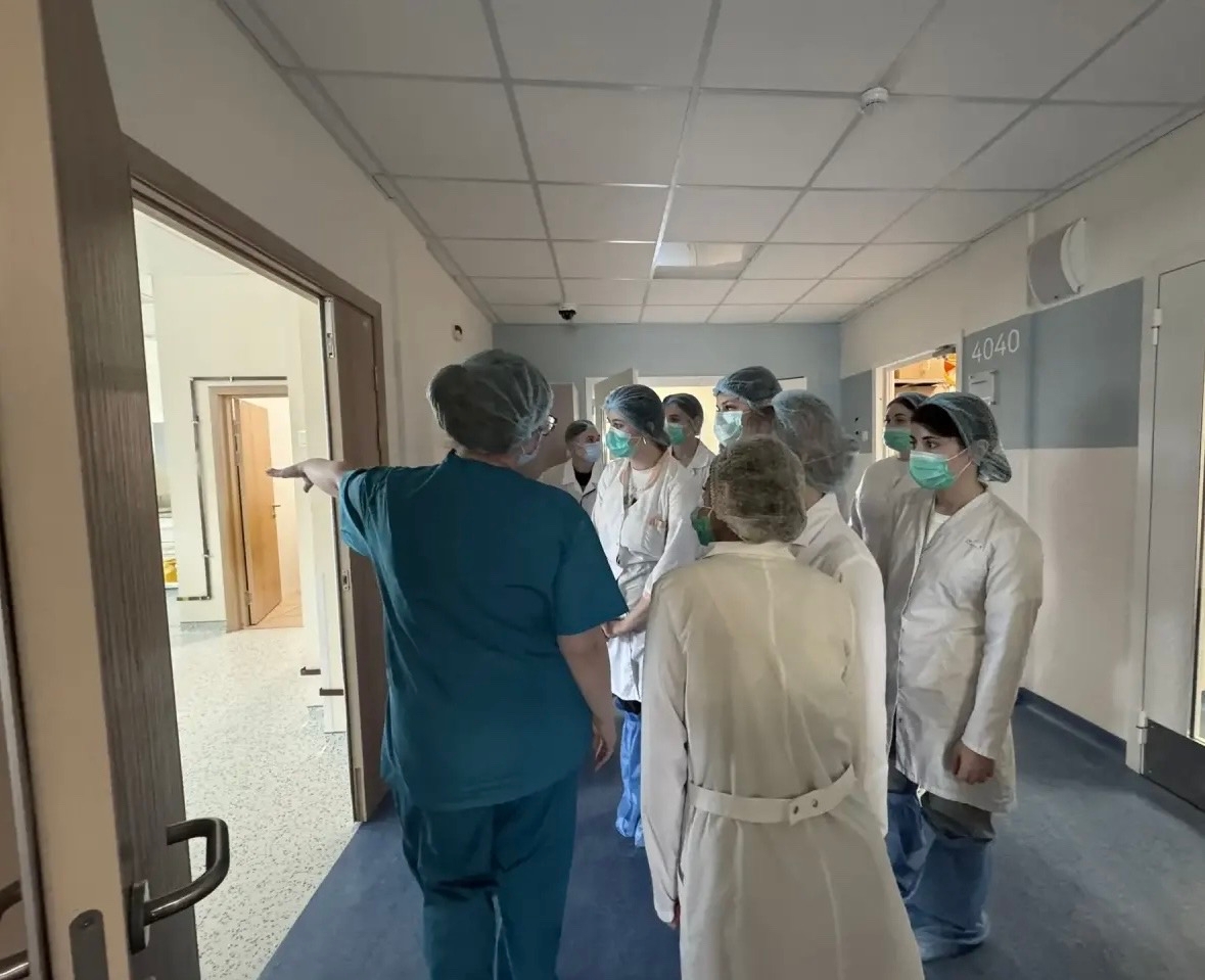 Будущие специалисты увидели, как в современной медицинской организации выстраивается безопасная среда для пациентов и персонала, как соблюдаются санитарно-эпидемиологические требования и как работает единая команда врачей, акушеров и медицинских сестер.