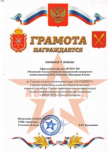 Особо отметим: Тимофей Анчуков (С-252) показал лучшее время при разборке и сборке АК-74 — 32 секунды. Слаженные действия при оказании медицинской помощи продемонстрировали Тимофей Анчуков, Даниил Черемнов, Михаил Панов, Александр Телышев и Сергей Коваленко. По итогам игры команда наших студентов заняла 2 место, подтвердив высокий уровень подготовки и командного взаимодействия.